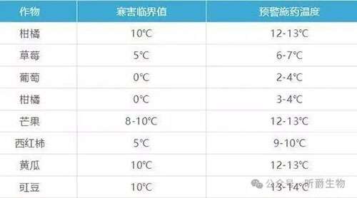 部分作物的寒害临界值